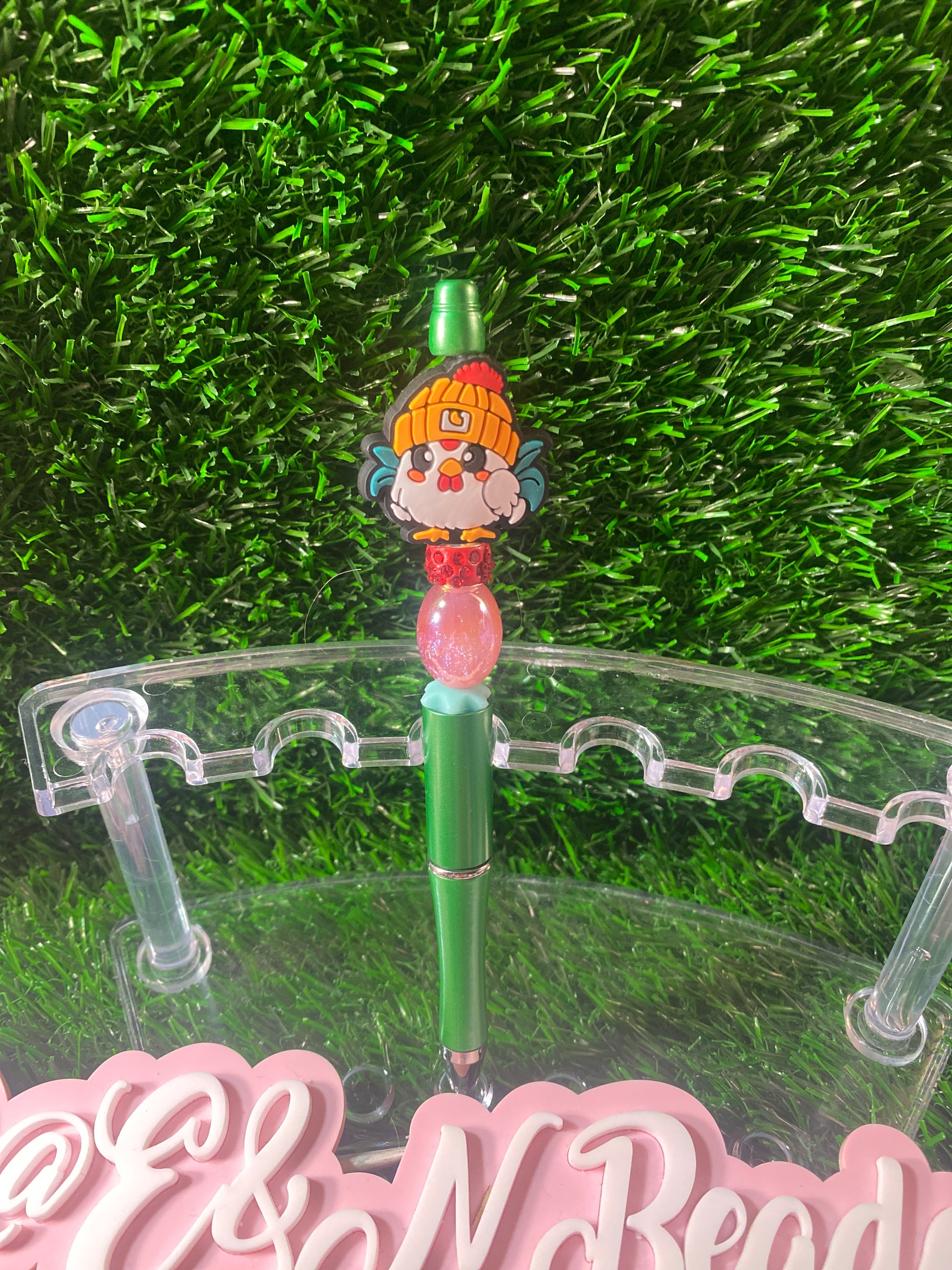 Chick beaded pen. This pen is handmade,it is black ink, & it’s unique in its own way. This pen is not intended for small children. It is made out of beads and can be a choking hazard to some kids. I have many more pens on my profile if you’ll like to see more. Thank you for visiting my shop!