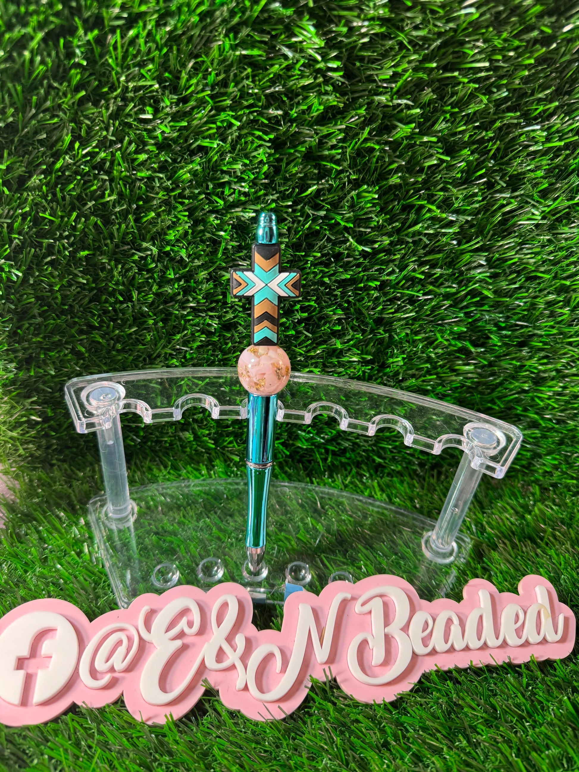 Cross beaded pen. This pen is handmade,it is black ink, & it’s unique in its own way. This pen is not intended for small children. It is made out of beads and can be a choking hazard to some kids. I have many more pens on my profile if you’ll like to see more. Thank you for visiting my shop!