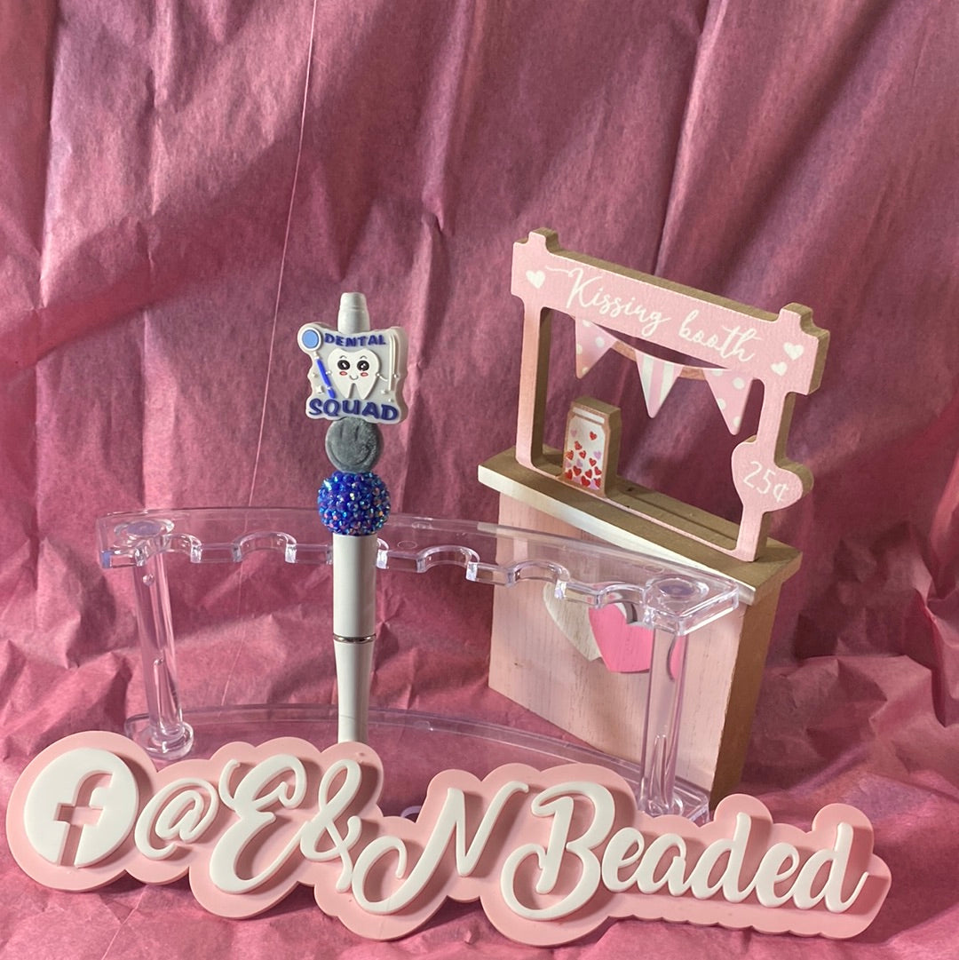 Dental squad beaded pen. This pen is handmade,it is black ink, & it’s unique in its own way. This pen is not intended for small children. It is made out of beads and can be a choking hazard to some kids. I have many more pens on my profile if you’ll like to see more. Thank you for visiting my shop!