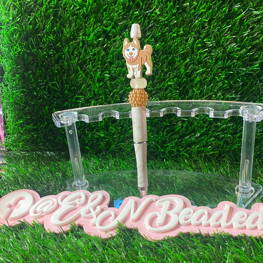 Husky beaded pen. This pen is handmade,it is black ink, & it’s unique in its own way. This pen is not intended for small children. It is made out of beads and can be a choking hazard to some kids. I have many more pens on my profile if you’ll like to see more. Thank you for visiting my shop!