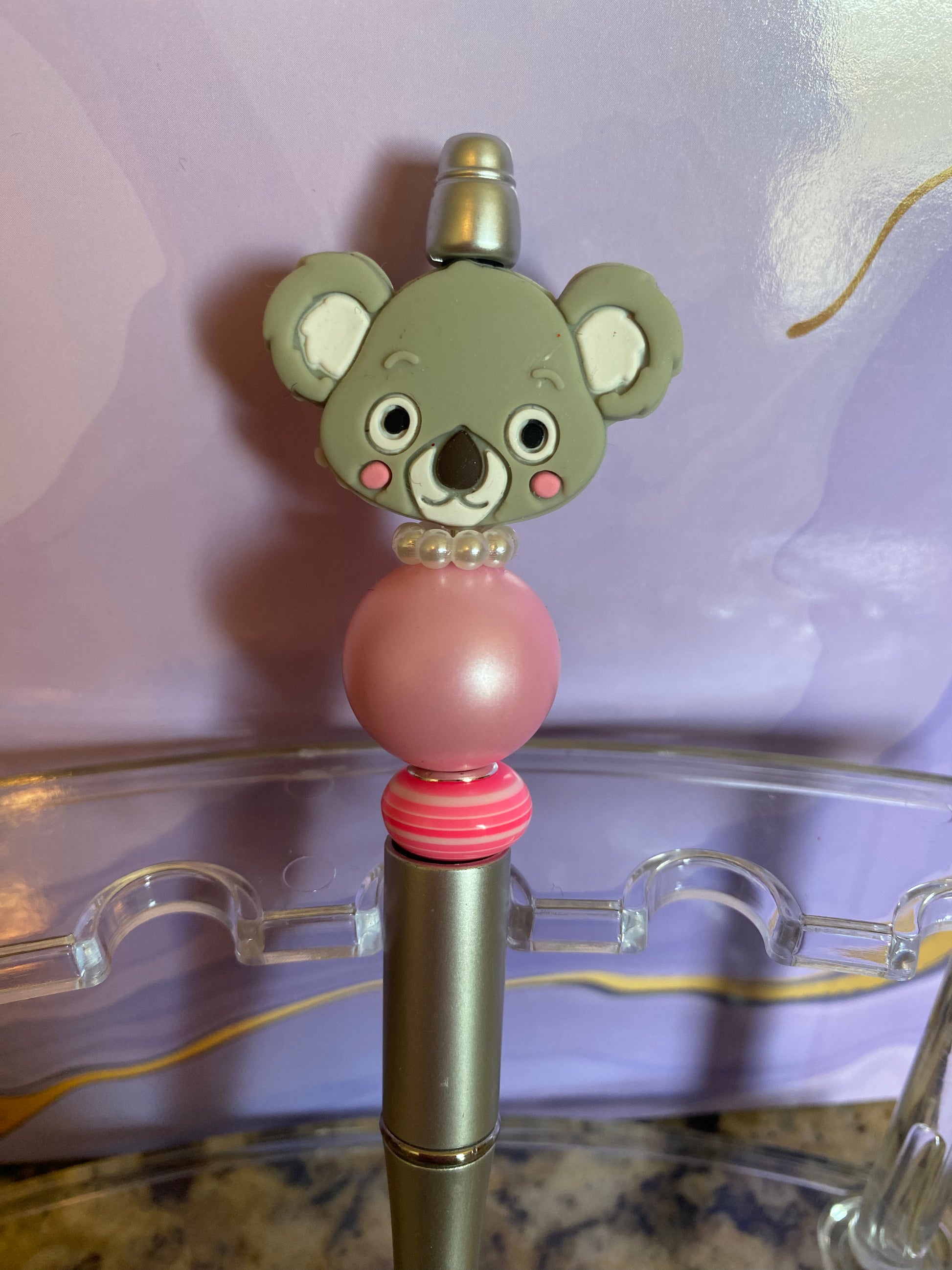 Koala beaded pen. This pen is handmade,it is black ink, and it’s unique in its own way. This pen is not intended for small children. It is made out of beads and can be a choking hazard to some kids. Thank you for visiting my shop!