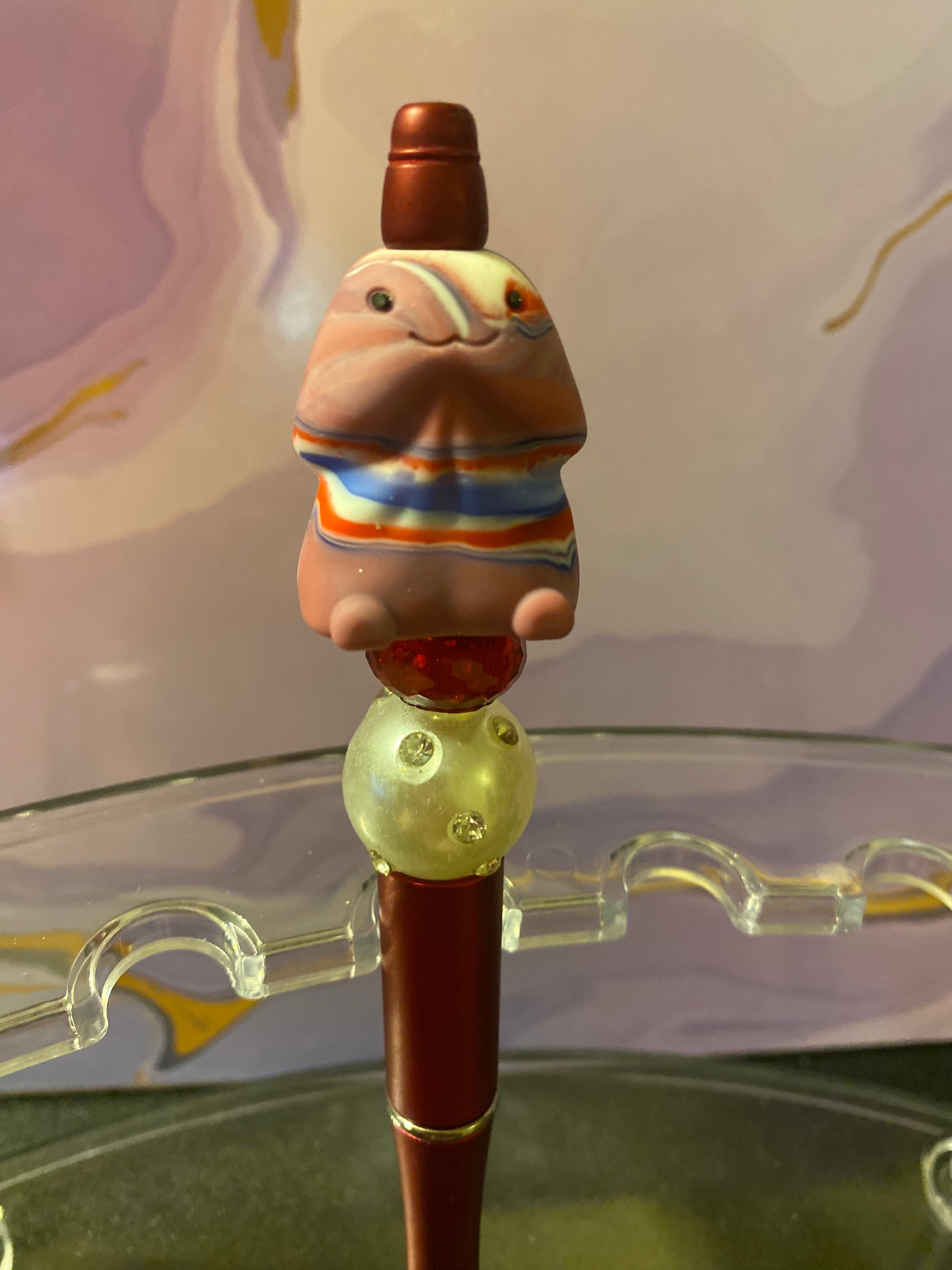 Little Richard beaded pen. This pen is handmade,it is black ink, and it’s unique in its own way. This pen is not intended for small children. It is made out of beads and can be a choking hazard to some kids. Thank you for visiting my shop!