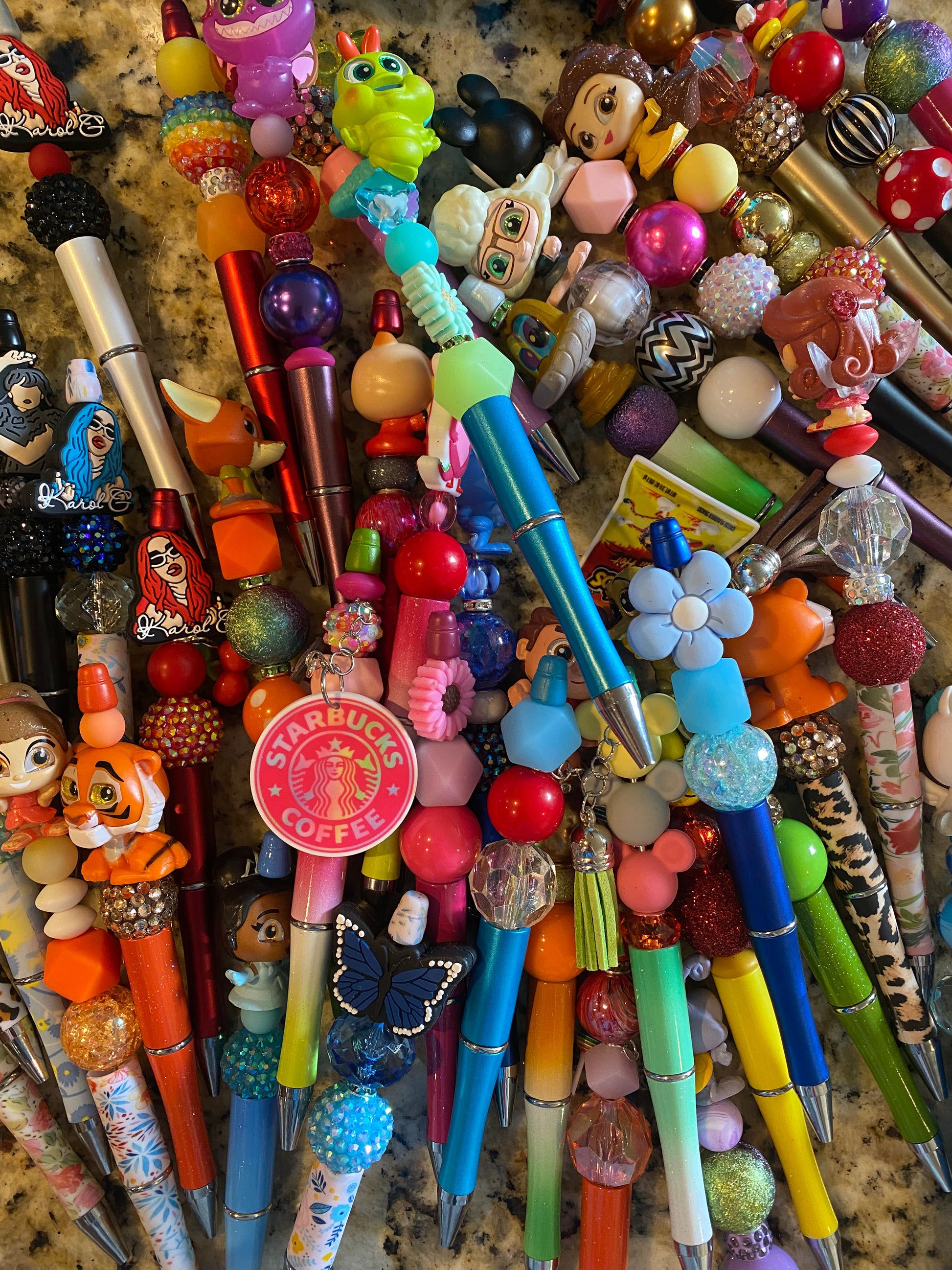 Get a mystery beaded pen. All pens are handmade, they are black ink, and all are unique in their own way. These pens are not intended for small children. They are made out of beads and can be a choking hazard to some kids. Thank you for visiting my shop!