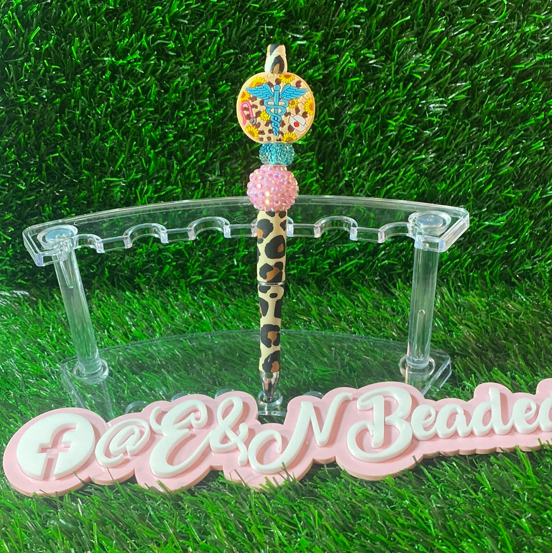 Nurse beaded pen. This pen is handmade,it is black ink, & it’s unique in its own way. This pen is not intended for small children. It is made out of beads and can be a choking hazard to some kids. I have many more pens on my profile if you’ll like to see more. Thank you for visiting my shop!