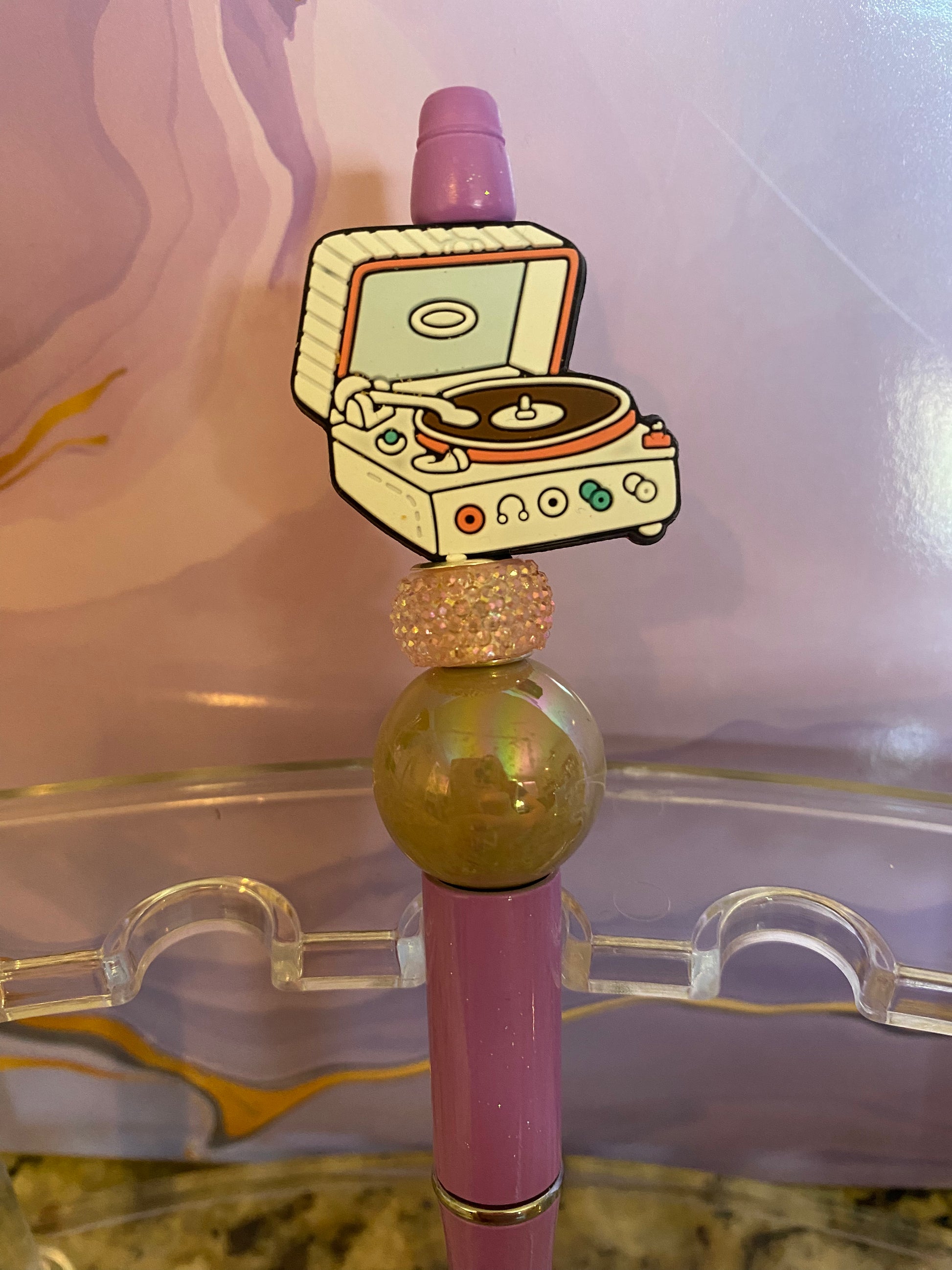 Record beaded pen. This pen is handmade,it is black ink, and it’s unique in its own way. This pen is not intended for small children. It is made out of beads and can be a choking hazard to some kids. Thank you for visiting my shop!
