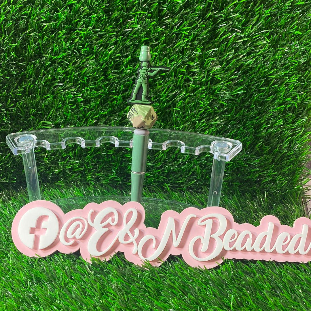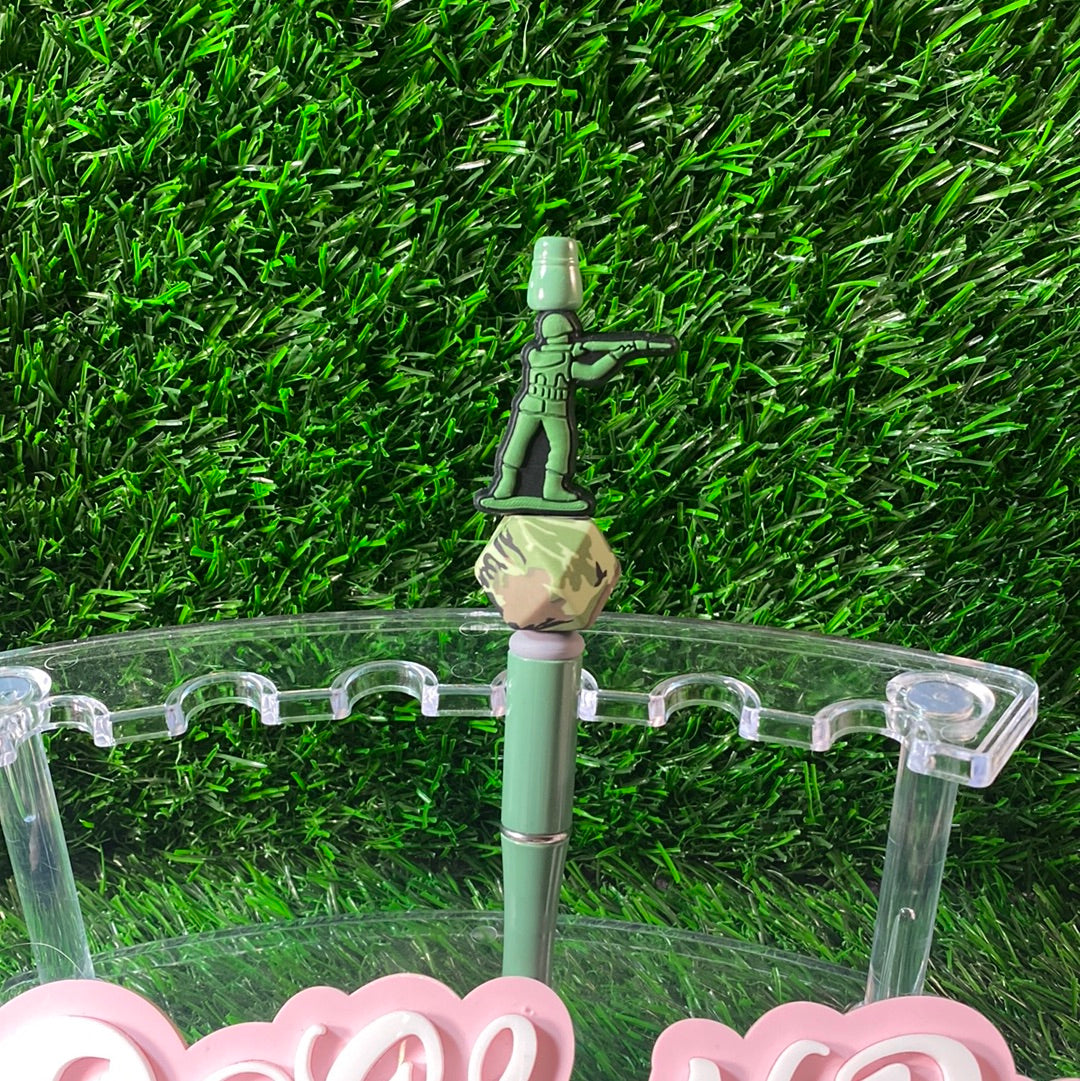 Soldier beaded pen. This pen is handmade,it is black ink, & it’s unique in its own way. This pen is not intended for small children. It is made out of beads and can be a choking hazard to some kids. I have many more pens on my profile if you’ll like to see more. Thank you for visiting my shop!