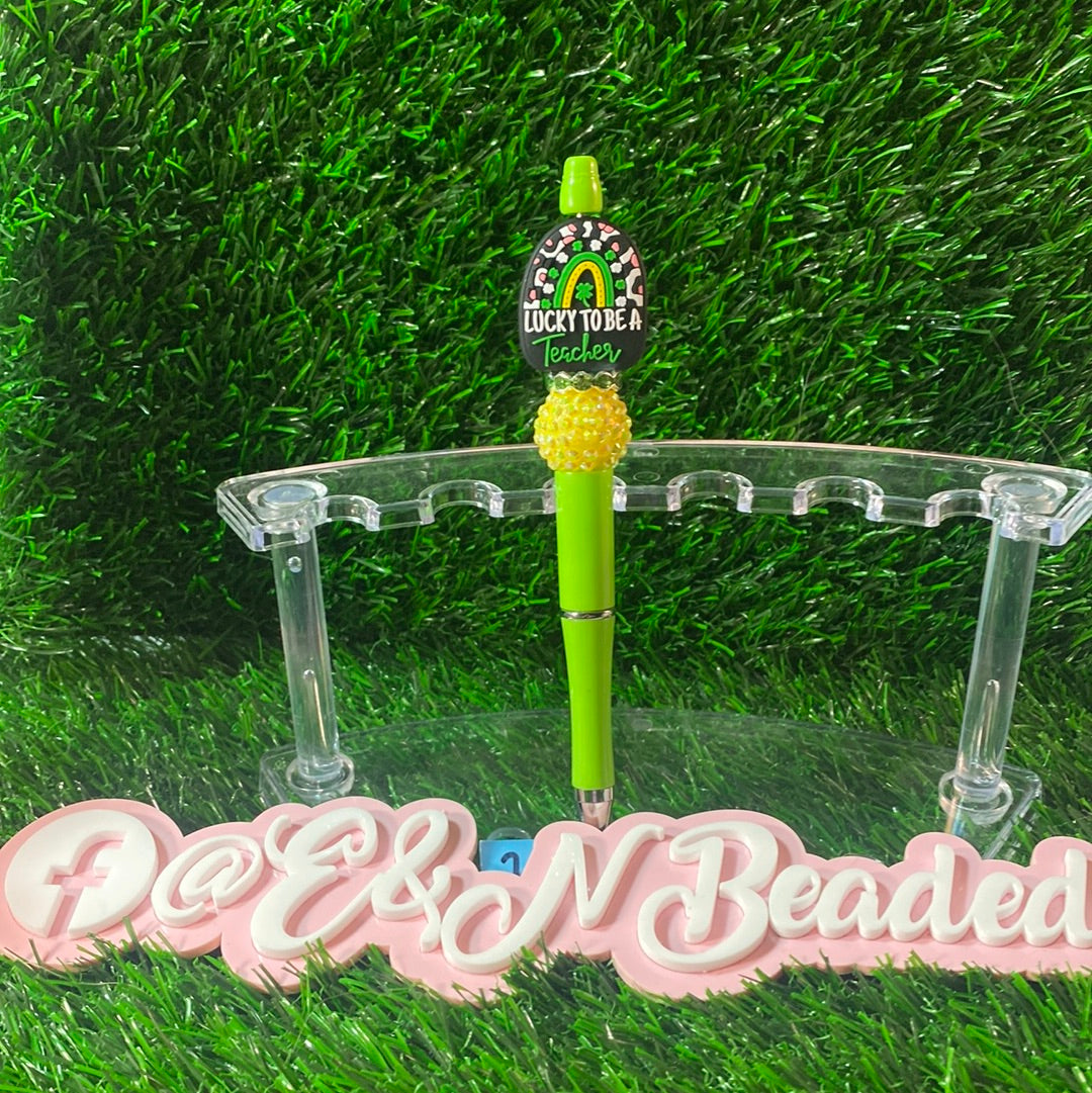 Teacher beaded pen. This pen is handmade,it is black ink, & it’s unique in its own way. This pen is not intended for small children. It is made out of beads and can be a choking hazard to some kids. I have many more pens on my profile if you’ll like to see more. Thank you for visiting my shop!