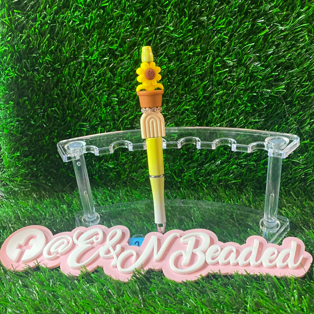 Sunflower beaded pen. This pen is handmade,it is black ink, & it’s unique in its own way. This pen is not intended for small children. It is made out of beads and can be a choking hazard to some kids. I have many more pens on my profile if you’ll like to see more. Thank you for visiting my shop!