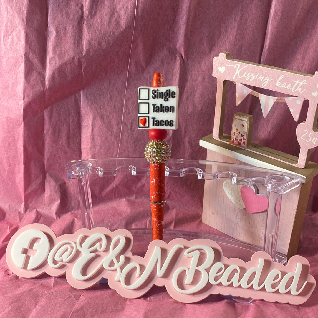 Single, taken, tacos beaded pen. This pen is handmade,it is black ink, & it’s unique in its own way. This pen is not intended for small children. It is made out of beads and can be a choking hazard to some kids. I have many more pens on my profile if you’ll like to see more. Thank you for visiting my shop!