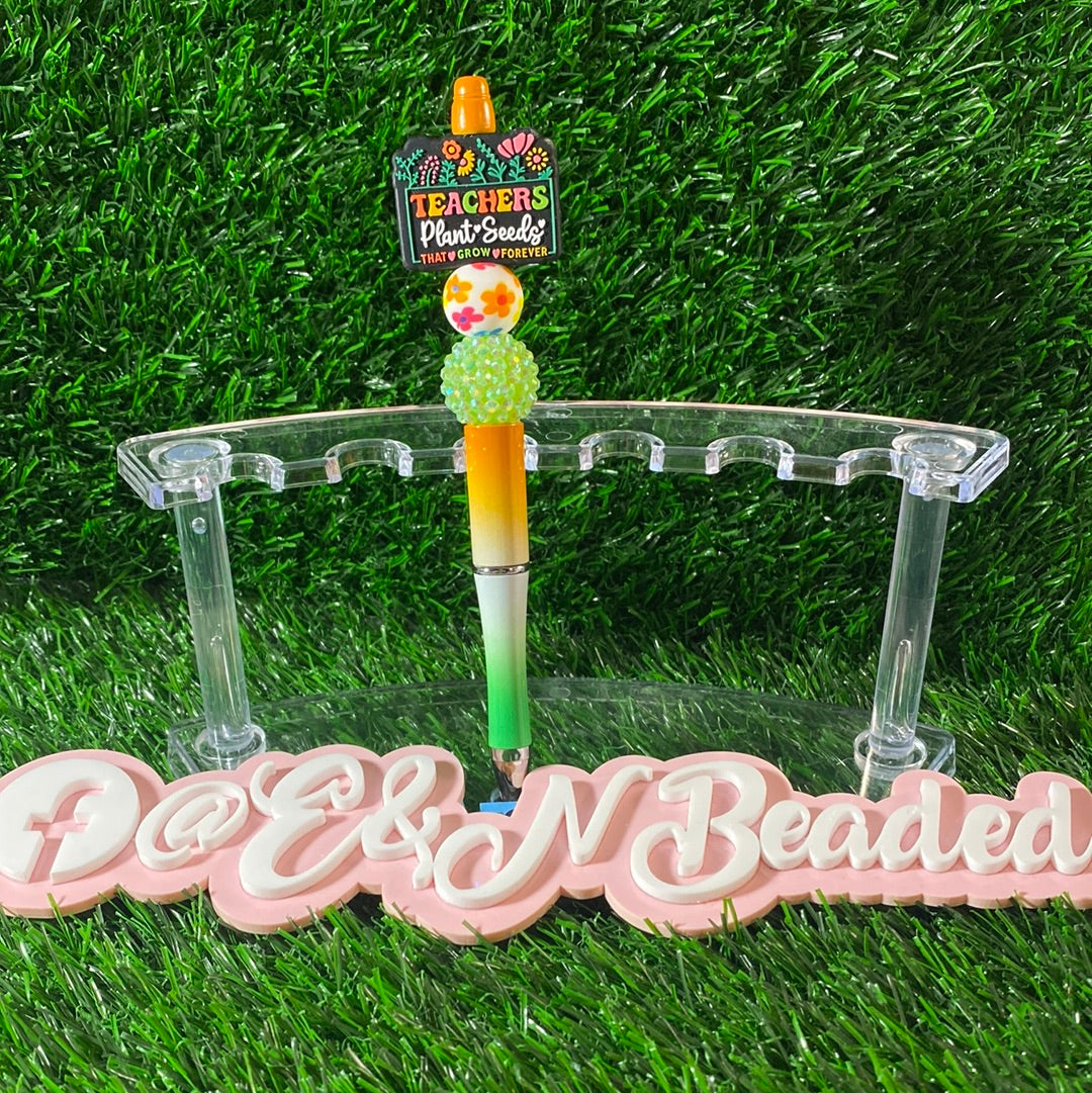 Teacher beaded pen. This pen is handmade,it is black ink, & it’s unique in its own way. This pen is not intended for small children. It is made out of beads and can be a choking hazard to some kids. I have many more pens on my profile if you’ll like to see more. Thank you for visiting my shop!